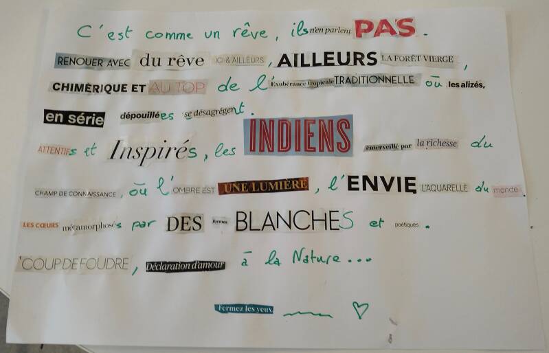 Exemple de prose poétique sur le thème « C'est comme un rêve » réalisée à partir de mots découpés distribués au hasard à chaque participant.